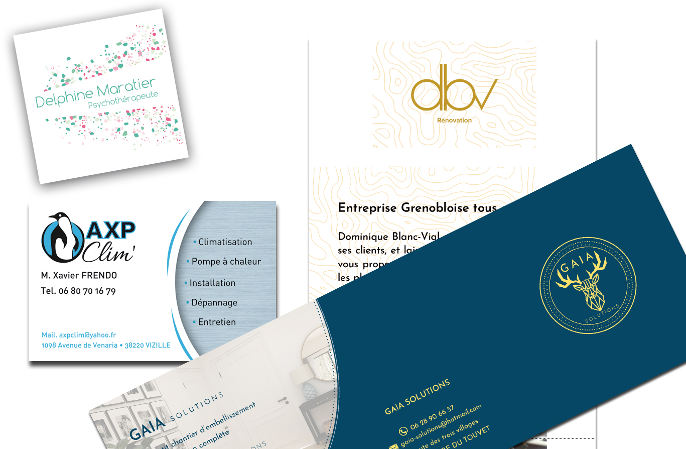 Objets, cartes, vœux, plaquettes, cartes, flyers, impressions, communication papier
